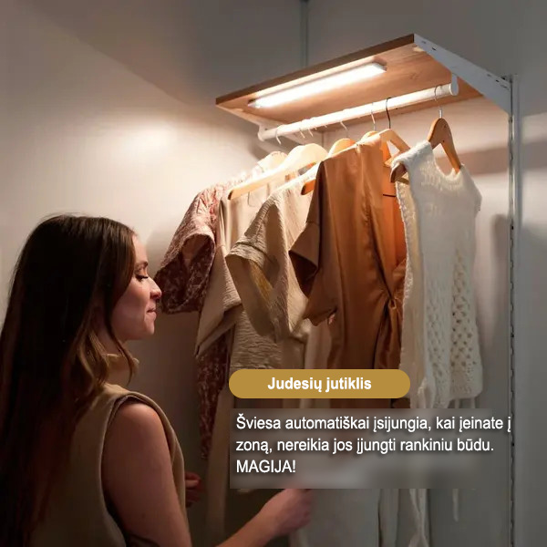 Palengvinkite apsirengimą priklijuodami šią lemputę savo drabužinėje ar spintoje. Ji automatiškai užsidega, kai atidarote duris, ir padeda surasti drabužius neklaidžiojant tamsoje.