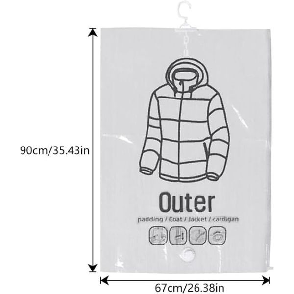 Pakabinkite maišą spintoje, įdėkite drabužius, užtraukite užtrauktuką ir naudokite pridedamą pompą orui pašalinti. Visas procesas trunka greičiau nei 60 sekundžių vienam maišui. Jokių įrankių, jokių baterijų, jokios papildomos įrangos – tik momentinis, be vargo atliekamas laikymas.
