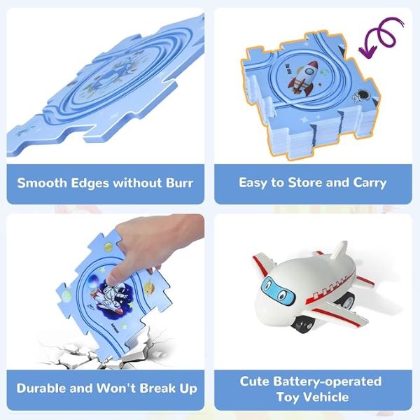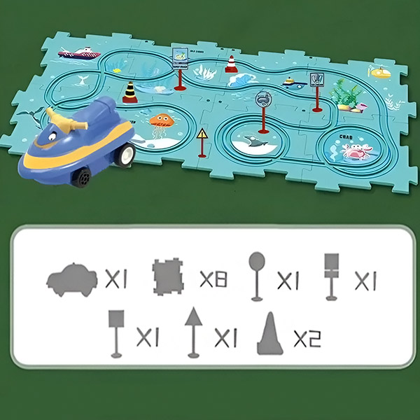 Rinkinyje yra daugybė trasos detalių, kurios leidžia vaikams lengvai kurti skirtingus maketus, stiprina jų kūrybiškumą ir problemų sprendimo įgūdžius.