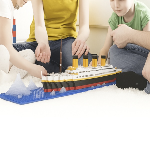 Kartu dėliokite Titaniką, lavindami susikaupimą ir akių–rankų koordinaciją. Spalvomis pažymėtos instrukcijos daro konstravimą iššūkiu, bet kartu ir malonia veikla, skatinančia kūrybiškumą ir bendrą laiką su šeima. Užbaigę šį iššūkį su tėvų pagalba, vaikai įgauna pasitikėjimo savimi ir labiau pasitiki tėvais. Žaidimas kaladėlėmis taip pat lavina kantrybę ir pažintinius gebėjimus.