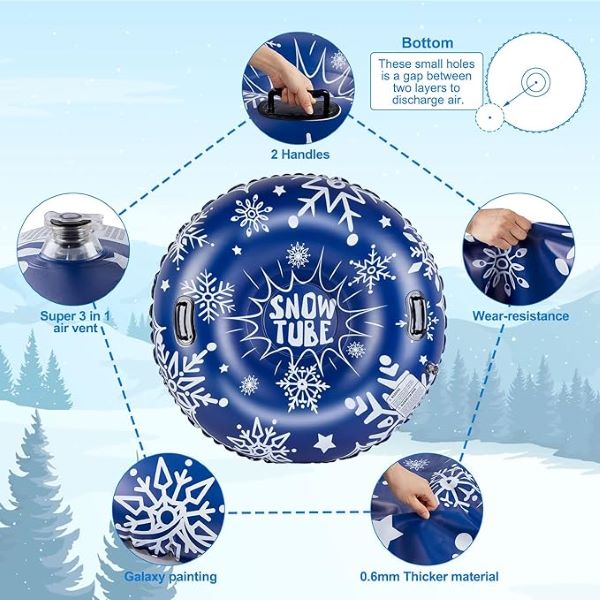 Su sniego vamzdžiu galite mėgautis nenutrūkstamu važinėjimu sniego rogutėmis visą dieną! Visiškai saugus ir patogiai nešiojamas, tai idealus pasirinkimas šeimos išvykoms ar slidinėjimo kelionėms.